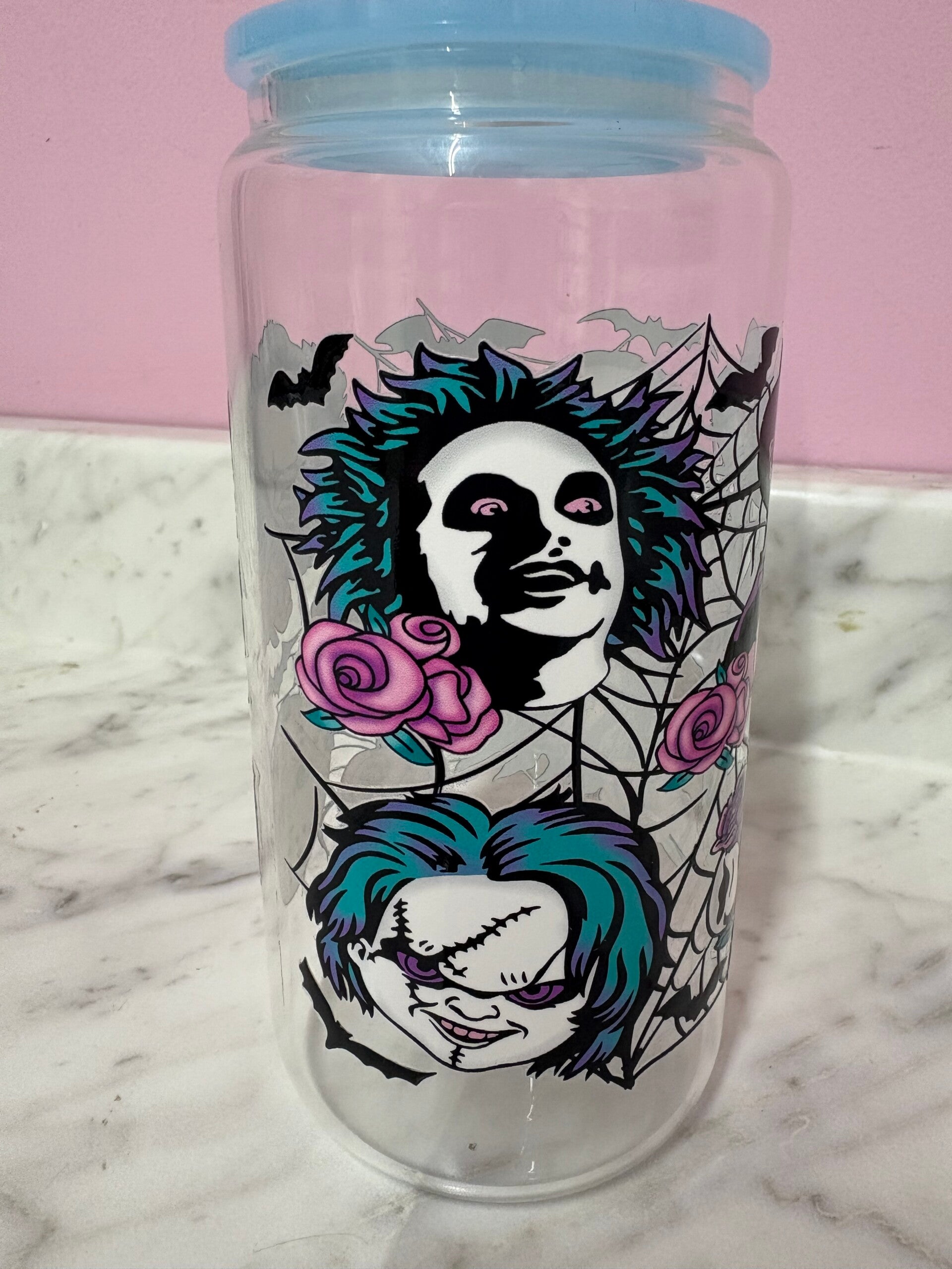 16 oz glass can tumbler comes with plastic lid and straw. UV Dtf